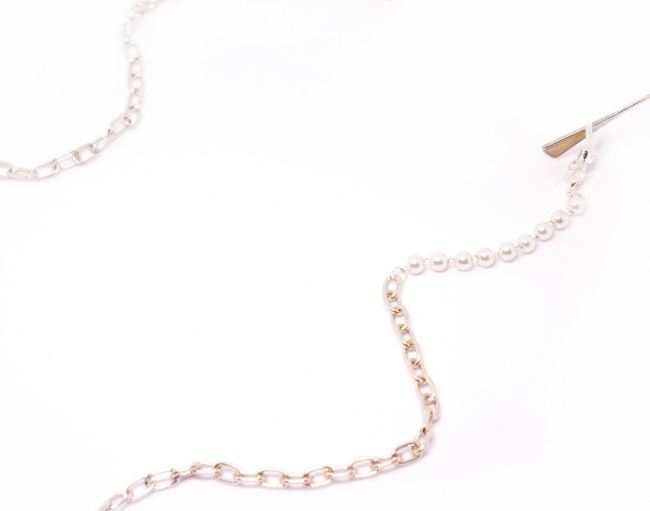 Χειροποίητη ασημί μεταλλική αλυσίδα με πέρλες στο τελείωμα