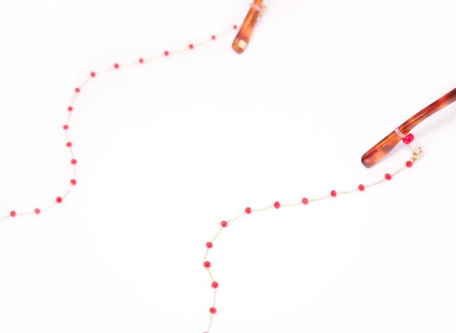 Χειροποίητη μεταλλική αλυσίδα Ροζάριο με ημιπολύτιμες κόκκινες πέτρες