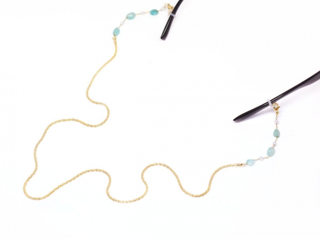 Χρυσή αλυσίδα με μπλε ημιπολύτιμους λίθους και πέρλες